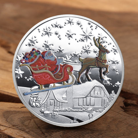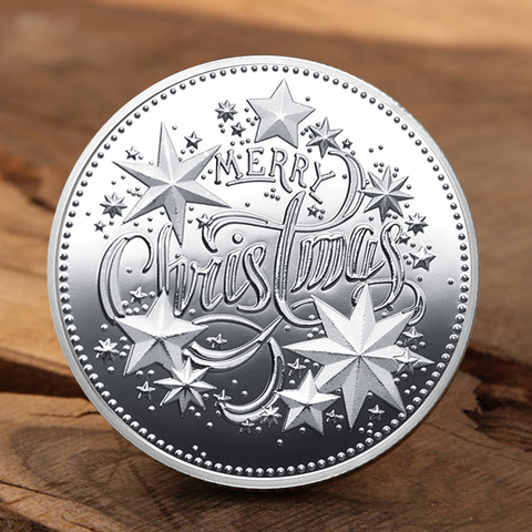 Giáng sinh vui vẻ chúc mừng năm mới kỷ niệm tiền vàng bạc Santa Xmas chúc đồng xu lưu niệm